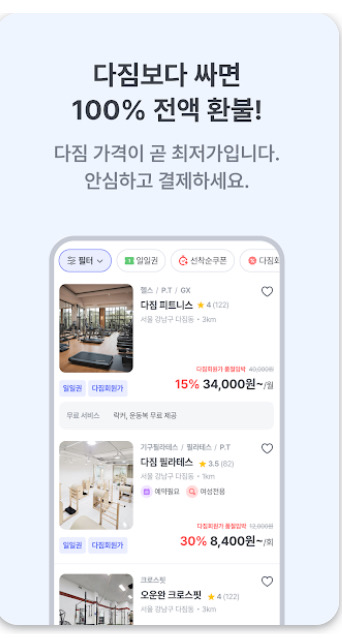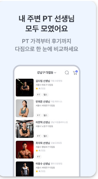 헬스장 가격 비교 어플, 다짐앱 - 헬스장 PT 비용 최저가 비교 앱