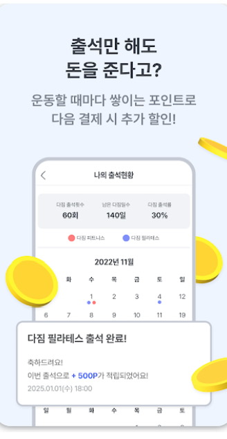 “출석 체크 기능이 있어서 운동 꾸준히 하게 되네요.”