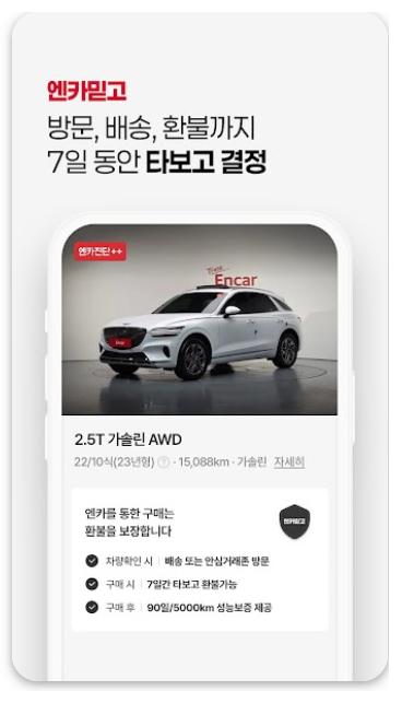 • 7일 환불 보장: 차량 구매 후 7일간 시승 후 환불 가능