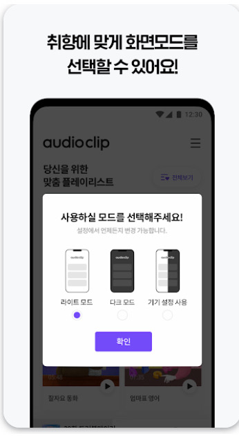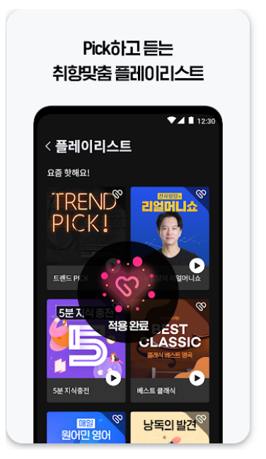 • 앱을 실행하면 카테고리별로 다양한 오디오 콘텐츠를 탐색할 수 있습니다.