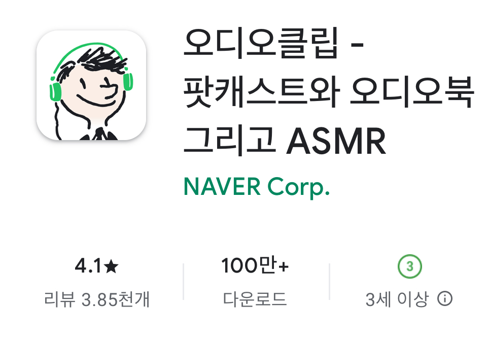 • 안드로이드: 구글 플레이스토어에서 ‘오디오클립’을 검색 후 설치할 수 있습니다. 현재 100만 회 이상 다운로드 되었으며 평점은 약 4.4입니다.