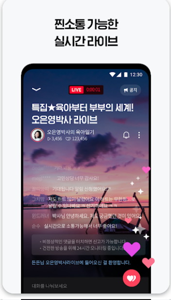 • 라이브 방송을 통해 실시간으로 창작자와 대화하거나 좋아요를 누르며 소통할 수 있습니다.