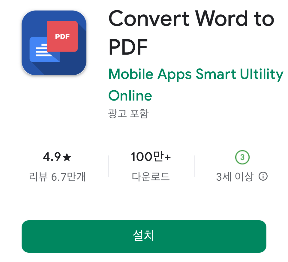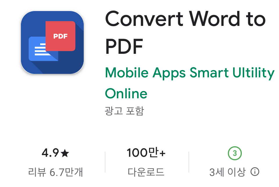 오늘 소개해드릴 Convert Word to PDF 앱은 이름 그대로 워드 문서를 빠르고 간편하게 PDF로 변환해주는 앱입니다. 별도의 회원가입이나 복잡한 절차 없이 바로 사용할 수 있어 학생, 직장인, 프리랜서 등 다양한 사용자들에게 유용하게 활용될 수 있습니다.
