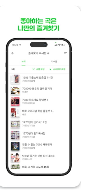 5. 즐겨찾기 기능으로 좋아하는 곡을 저장하거나 재생 리스트를 구성합니다.