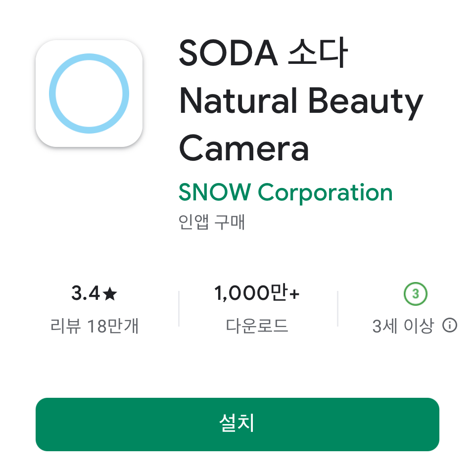 구글 플레이스토어에서 ‘SODA – Natural Beauty Camera’를 검색 후 다운로드하시면 됩니다. 앱 설치 후 카메라 접근 권한과 저장소 접근 권한을 허용해야 정상적으로 사용할 수 있습니다.