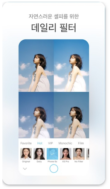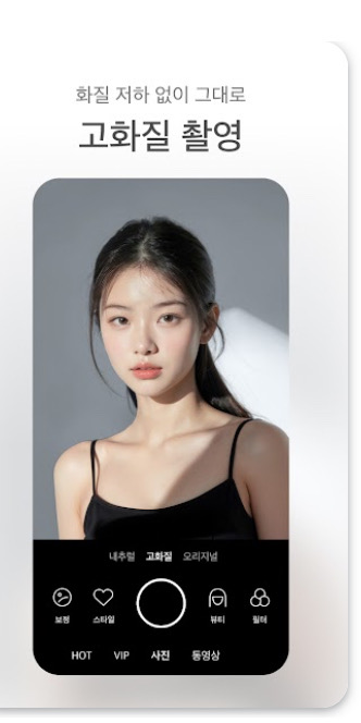 또한 이 앱은 “필터와 메이크업이 결합된 카메라”라는 슬로건을 내세우며, 사용자가 메이크업을 하지 않아도 화사한 피부 표현과 입체적인 얼굴을 만들어 줍니다. 인물 사진에 최적화된 고해상도 촬영 기능과 배경 흐림 효과(포커스 기능)도 지원하여, 스마트폰 카메라만으로도 DSLR 수준의 인물 사진을 구현할 수 있습니다.